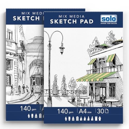- SOLO MIX MEDIA SKETCHPAD SPECIFICATION: Your artistry with Solo mix media sketchpad or drawing/sketch book set, featuring 50 pages catering to artists of all levels. Each spiral-bound artbook boasting 50 acid-free pages of 140 gsm heavyweight paper. Sized at 21×29.7cm (A4), it’s perfect art material for sketching, drawing, and painting with a variety of mediums such as pencils, markers, paints, watercolor and pens.