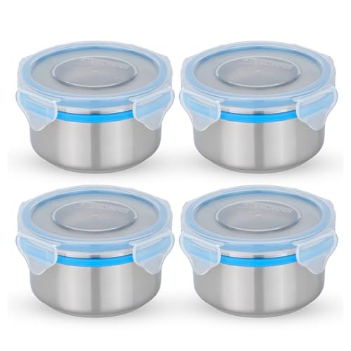 - Package Includes : 4 Piece Stainless Steel Containers with transparent lid, designed for versatile use such as kitchen storage, tiffin, or dabba of 280 ML each , Dimension: 8.6 x 5.6 cm