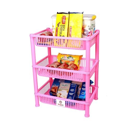 Sulfar Multipurpose Plastic Trolley with Dish Rack for Kitchen Fruit Vegetable Storage Basket Modern Organizer – 3 Layer Stackable Shelf Cart Kitchenware Food, Snacks, Bottles, Toys (Pink) is available on Amazon at best discounted online price. Original price of this product is ₹ 1295. You can buy this product at discounted rate ₹ 246.