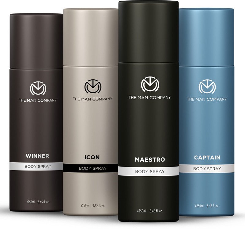 THE MAN COMPANY Captain, Maestro, Icon and Winner 4 x 250ml | Long-Lasting Deodorant Body Spray Deodorant Spray – For Men(1000 ml, Pack of 4) is available on flipkart at best discounted online price. Original price of this product is ₹ 1996. You can buy this product at discounted rate ₹ 479.