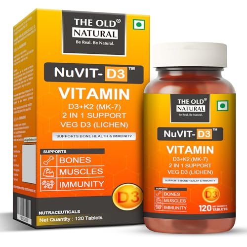 The Old Natural Nuvit-D3 Vitamin D3 K2 Supplement | Vitamin K2 MK7 To Support Bone & Heart Health | Veg D3 – Lichen – 120 Tablets is available on Amazon at best discounted online price. Original price of this product is ₹ 599. You can buy this product at discounted rate ₹ 398.