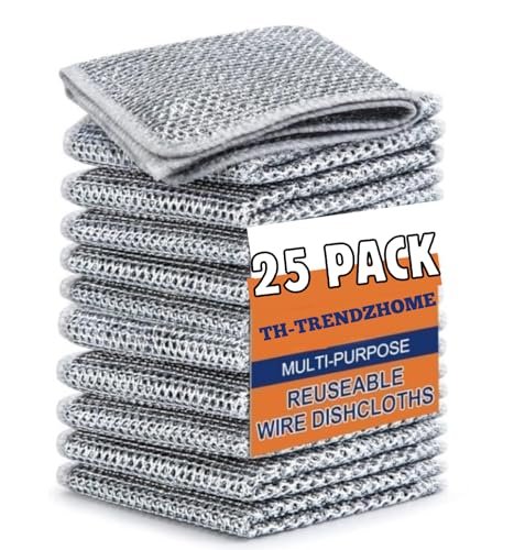 Trendz Home® 25 Pack Non-Scratch Wire Dishcloth, Steel Scrubber for Utensils Cleaning, Multipurpose Wet and Dry Cleaning Dish Wash Cloth Scrubber for Washing Dishes, Sinks, Counters