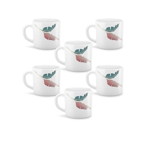 Treo By Milton Opalware Amara 10 Palma Cup Set | Microwave & Dishwasher Safe | Bone-Ash Free | Tempered Toughness | Set of 6 | White | Crockery Set for Daily Use & Gifting