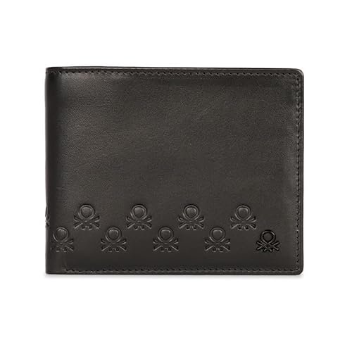 United Colors of Benetton Men RFID Protected Erlach Global Coin Wallet - Black, No. of Card Slot: 4 | Embossed Global Coin Wallet with Side Closure | Leather