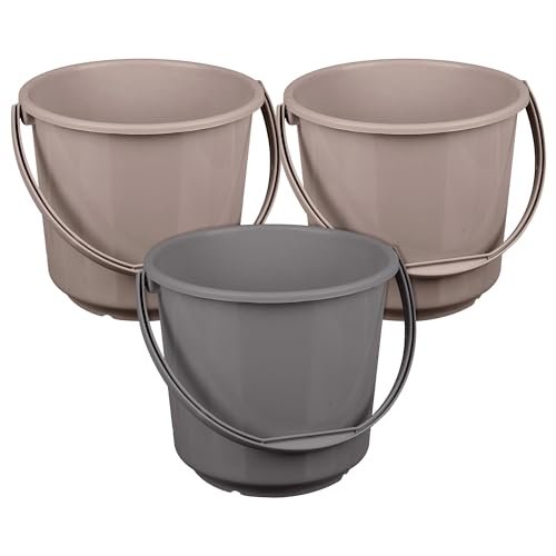 - 💡 PACKAGE CONTAIN : 3 Piece Plain Bucket | 5 LTR | MATERIAL : Plastic | 2 Piece Brown-1 Piece Gray | PACKAGE DIMENSION : 23 cm x 23 cm x 19 cm