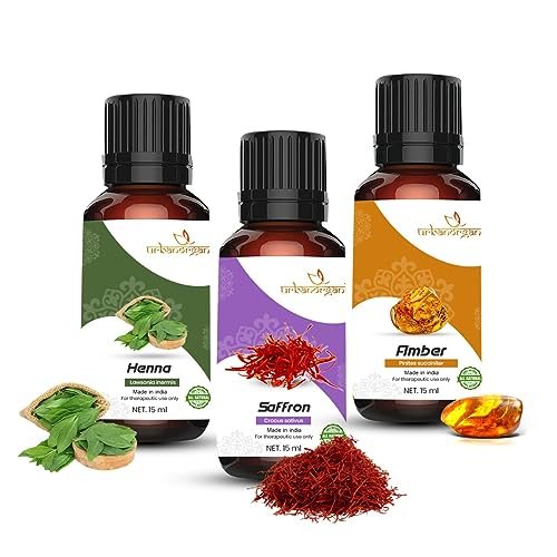 Urbanorganics Pure Combo Of 3 Essential oil For Hair & Skin Natural Therapeutic Grade & Undiluted Oil 15ML (Henna-Saffron-Amber)