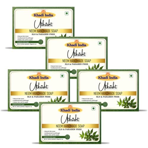 Utkrisht Khadi Neem Handmade Bathing Soap Bar 125g (Pack of 5) | Natural & Herbal | Deep Cleansing for Glowing Skin | Removes Dirt & Excess Oil | For Itchy, Red, & Irritated Skin | All Skin Types is available on Amazon at best discounted online price. Original price of this product is ₹ 475. You can buy this product at discounted rate ₹ 236.