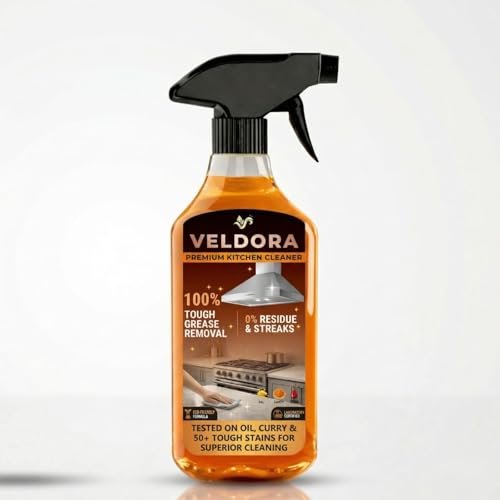 VELDORA Kitchen Cleaner – 500 ml | Instantly removes Tough Greases, No stains or residue | Cleans in 60 seconds | Maximum cleaning power | Suitable for Counter Tops, Stoves, Chimneys 500 ml is available on Amazon at best discounted online price. Original price of this product is ₹ 499. You can buy this product at discounted rate ₹ 249.