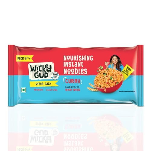 Wickedgud Whole Wheat Curry Noodles 240g (Pack of 4) | No Maida | No Palm Oil | Source of Protein is available on Amazon at best discounted online price. Original price of this product is ₹ 140. You can buy this product at discounted rate ₹ 105.