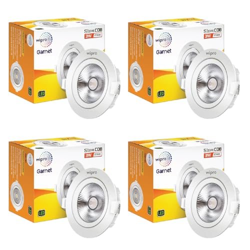 wipro Garnet 3 W Slim COB Downlight for False Ceiling | Warm White (2700 K) | Ceiling or Cabinet Light with Adjustable Optics | Pack of 4 is available on Amazon at best discounted online price. Original price of this product is ₹ 2360. You can buy this product at discounted rate ₹ 356.08.