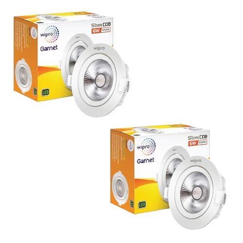 wipro Garnet 6 W Slim COB Downlight for False Ceiling | Cool Day White (6500K) | Ceiling or Cabinet Light with Adjustable Optics | Pack of 2 is available on Amazon at best discounted online price. Original price of this product is ₹ 1580. You can buy this product at discounted rate ₹ 406.27.