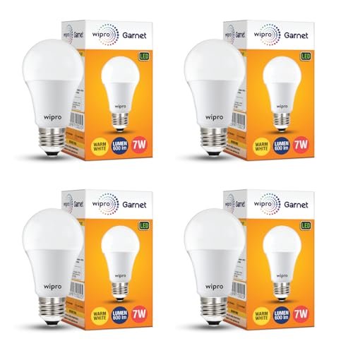 wipro Garnet 7W LED Bulb for Home & Office |Warm White (2700K) | E27 Base|220 Degree Light Coverage |4Kv Surge Protection |400V High Voltage Protection |Energy Efficient | Pack of 4 is available on Amazon at best discounted online price. Original price of this product is ₹ 900. You can buy this product at discounted rate ₹ 231.4.