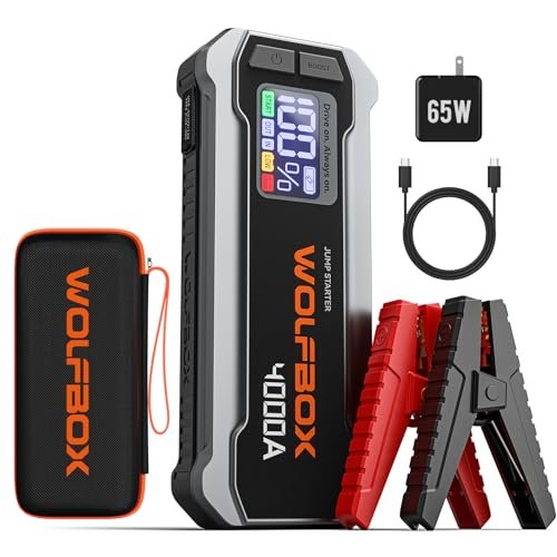 - Efficient 65W USB-C Quick Charging Solution: The WOLFBOX 4000A Jump Starter for car battery is not only equipped with a 65W Type-C bidirectional port and a QC3.0 USB-A port, but also comes with a PD 65W fast charger, allowing it to be fully charged in just 1.3 hours. With its dual output port design, it efficiently powers a variety of devices such as phones, laptops, and iPads, making it an excellent companion for travel or camping