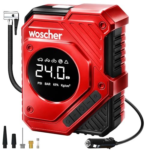 - COMPACT & PORTABLE: The Woscherr tyre inflator for car and bike is compact and lightweight, making it perfect for storing in your car trunk or taking on the go.