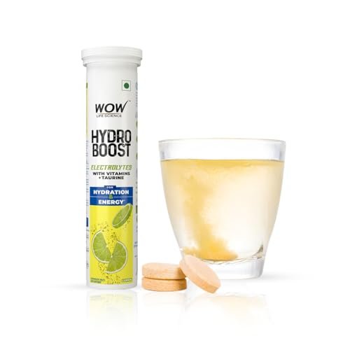 WOW Life Science Hydroboost Electrolytes Low Sugar Energy Drink For Instant Hydration – 20 Effervescent Tablets (6 Litres) With 5 Essential Electrolytes + Vitamins (B6, B12, C & D) | Lemon Flavour is available on Amazon at best discounted online price. Original price of this product is ₹ 295. You can buy this product at discounted rate ₹ 99.