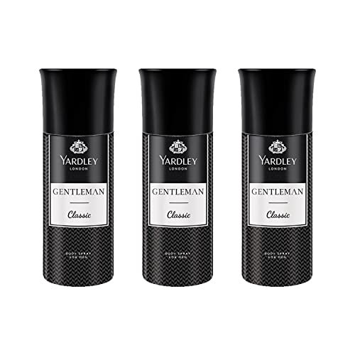 Yardley London Gentleman Classic Body Spray for Men| Fresh Woody Fougère Notes | Masculine Fragrance | Body Deodorant for Men | 150ml, Pack of 3 is available on Amazon at best discounted online price. Original price of this product is ₹ 675. You can buy this product at discounted rate ₹ 376.