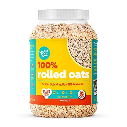 Yogabar 100% Rolled Oats 1 kg Jar | Premium Golden Rolled Oats, Gluten Free with High Fibre, Non GMO | Healthy Food with No Added Sugar | Diet Food for Weight Management is available on Amazon at best discounted online price. Original price of this product is ₹ 490. You can buy this product at discounted rate ₹ 199.