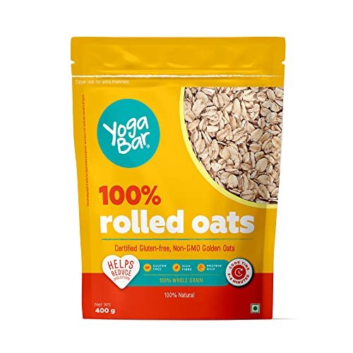 Yogabar 100% Rolled Plain Oats 400G | Premium Golden is available on Amazon at best discounted online price. Original price of this product is ₹ 199. You can buy this product at discounted rate ₹ 89.
