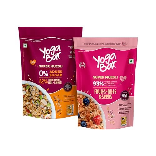 Yogabar Breakfast Cereal & Muesli | 93% Whole Grains Dry Fruits Nuts and Seeds | No Added Sugar 82% Almonds Whole Grains and Seeds | 400g Each is available on Amazon at best discounted online price. Original price of this product is ₹ 718. You can buy this product at discounted rate ₹ 329.