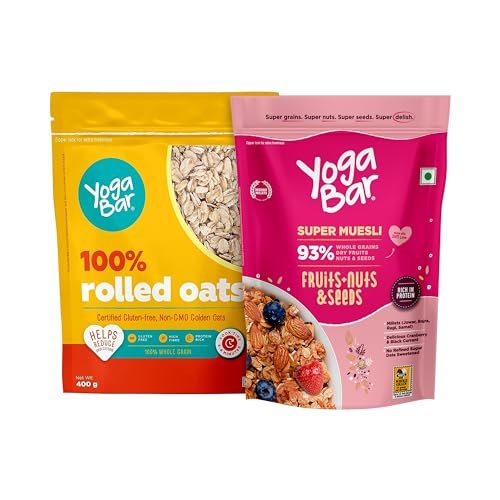 Yogabar Breakfast Oats and Muesli | Fruits and Nuts Muesli | Super Oats Premium Golden 100% Rolled Oats Combo Pack – 800gm is available on Amazon at best discounted online price. Original price of this product is ₹ 549. You can buy this product at discounted rate ₹ 330.