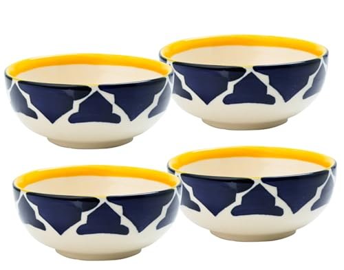 yomith Handcrafted Ceramic Soup Bowls Set, Black & Beige Moroccan Pattern, Microwave & Dishwasher Safe, 200 ml Serving Bowls for Snacks, Curry, Soup & Dessert (Blue, Pack of 4) is available on Amazon at best discounted online price. Original price of this product is ₹ 1499. You can buy this product at discounted rate ₹ 399.