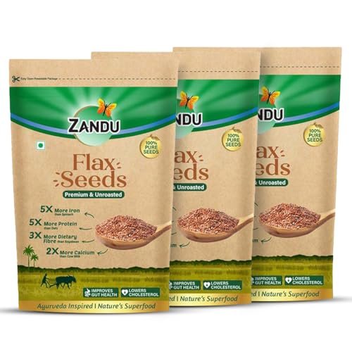 - What You See is What You Get: Every pack is filled with pure, high-grade flax seeds—nothing hidden. No added chemicals, no dust, no impurities, just nature’s best in its raw form. Backed by Zandu’s trusted legacy in natural wellness. Transparent nutrition for a healthier, more informed you.