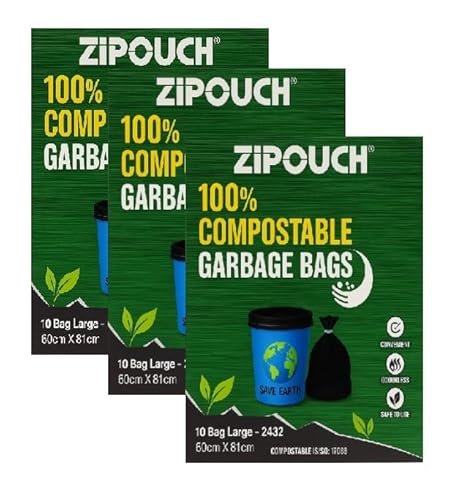 Zipouch 100% Compostable Dustbin Bag Large Size 24 X 32 Inches (Large) 30 Bags (3 Packs) Dustbin Bag/Trash Bag For Dry & Wet Waste | Black is available on Amazon at best discounted online price. Original price of this product is ₹ 570. You can buy this product at discounted rate ₹ 147.